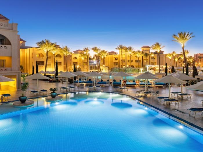 Das atemberaubende 4-Sterne-Superior Jungle Aqua Park Resort Hurghada bietet seinen Gästen eine der größten Wasserparkanlagen in Hurghada. Die Abenteueranlage bietet sich ideal für einen aktiven Familienurlaub mit Kindern an. Der weitläufige Wasserpark setzt sich aus 21 Pools zusammen, die durch Brücken und Kanäle miteinander verbunden sind. Dabei sind alle Schwierigkeitsgrade von Familien- und Kinderrutschen bis hin zu Kamikazerutschen vertreten. Zum weiteren sportlichen Angebot gehören unter anderem ein Tennisplatz, ein Fitnesscenter und eine Minigolfanlage. Kinder sind im Miniclub bestens aufgehoben, während die Eltern in der Sauna oder bei einer Massage entspannen. Das Sport- und Animationsprogramm wird von abendlichen Shows abgerundet.