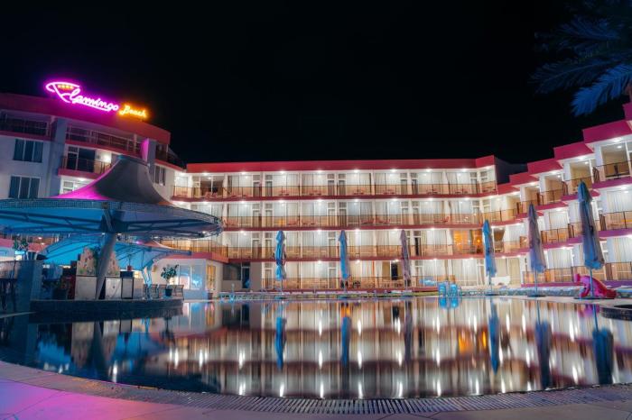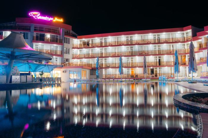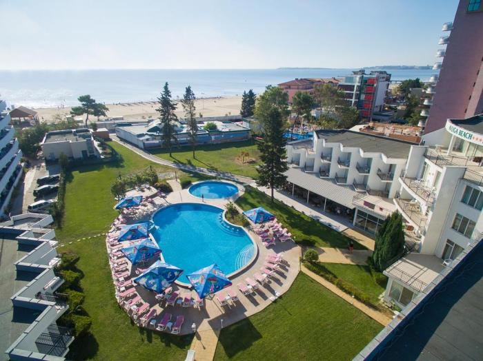 Direkt am 8 Kilometer langen, feinen Sandstrand des Schwarzen Meeres liegt dieses Hotel. Unter der bulgarischen Sonne verspricht dieser Küstenabschnitt vor allem eines: Erholung pur. Neben dem Strand steht Gäste hierfür auch eine Sonnenterasse zur Verfügung, während der Pool eine wunderbare Möglichkeit zur Abkühlung bietet. Doch auch die exzellente Lage des Hotels überzeugt. Für einen kurzen Ausflug in die Umgebung laufen Reisende nur wenige Minuten zu verschiedenen Restaurants, Bars und Geschäften. Auch nachtaktive Abenteurer werden auf der Suche nach Discos und belebten Cocktailbars in Hotelnähe fündig.