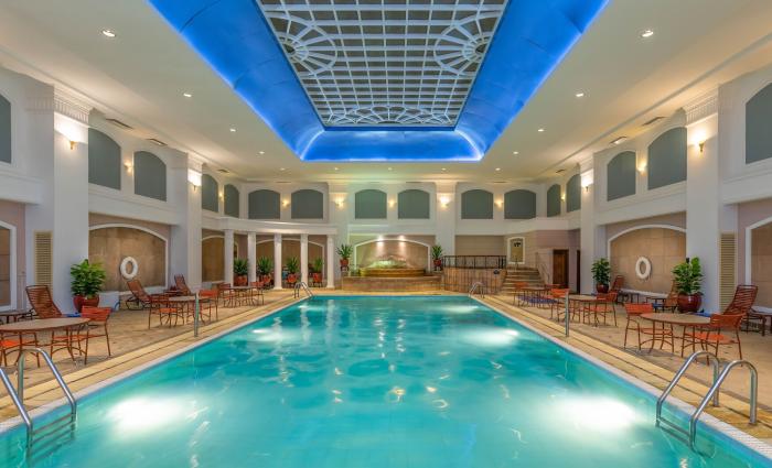 Pool (beheizt)WellnessSportangebotFamilienfreundlichInnenpoolSauna- / BadelandschaftFitnessPoolMassageSquashParkplatzEntspannungsangebotTennisRestaurantWäscheserviceNichtraucherhotelNichtraucherzimmerBarrierefrei (teilweise)Internet