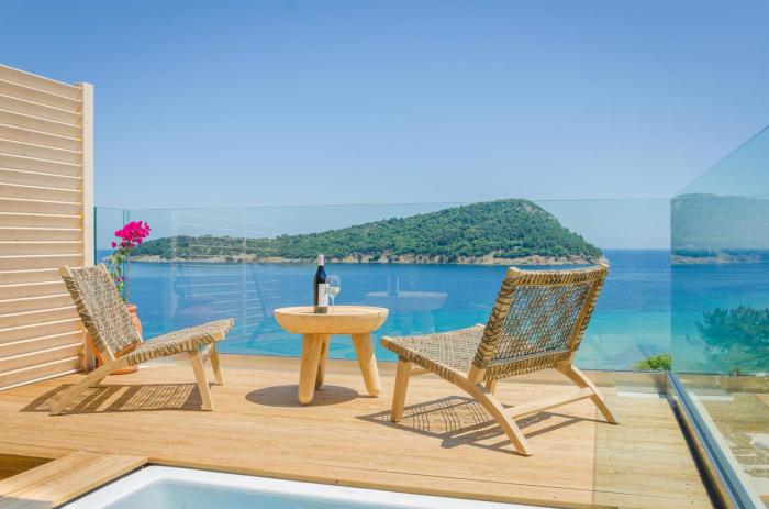 Zusammenfassende Gästebewertung Traumhafte Hanglage mit super Ausblick. Zimmer, bis auf das Standartzimmer, renoviert und in gutem Zustand. Die Suite sind ein Traum! Das Essen in der hoteleigenen Taverne ist nur zu empfehlen. Es gibt keinen Ort in unmittelbarer Nähe, aber mit Roller/Auto super Hotellage zur Inselerkundung. Top!