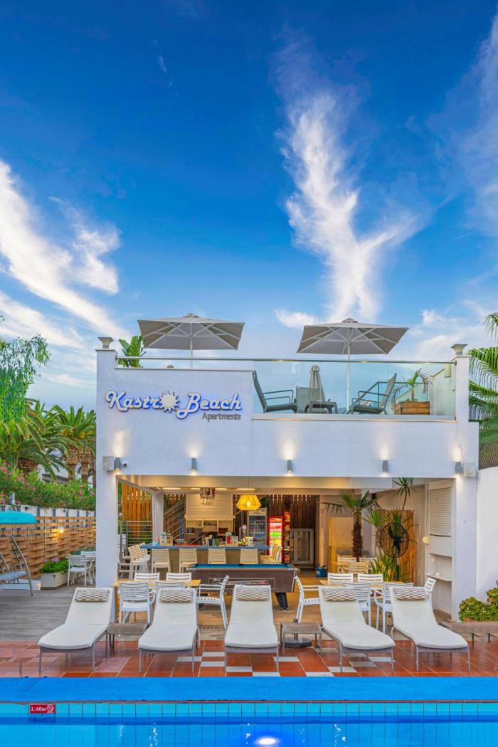 Die am Pool sind kostenlos, die am Strand gehören zu anderen Hotels, da Kastro Beach Apartments nicht ganz direkt am Strand liegt. Es ist aber eine sehr schöne Unterkunft.