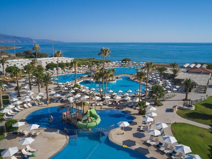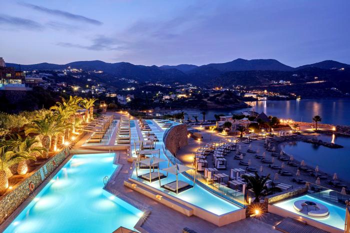 Mit Blick auf den Golf von Mirabello, einem Privatstrand direkt vor der Tür und exklusivem Service lockt das Resort auf Kreta Gäste aus der ganzen Welt. Das exklusive Hotel bietet vom charmanten Doppelzimmer mit Gartenblick über großzügige Bungalows bis hin zu luxuriösen Maisonette-Suiten alles, was das Urlauber-Herz begehrt. Hervorzuheben ist neben den exzellenten kulinarischen Angeboten in Buffet- und A-la-carte-Restaurants das Wellness-Angebot. Mit Hallenbad, 8 Behandlungsräumen für Massagen und Sauna ist Erholung vorprogrammiert. Wer sich nach sportlichem Ausgleich sehnt, wird sich auf den beiden Tennisplätzen und dem Beachvolleyballfeld auf ein Match freuen. Auch Kinder kommen im Miniclub, dem Spielplatz und mit liebevoller Animation auf ihre Kosten.
