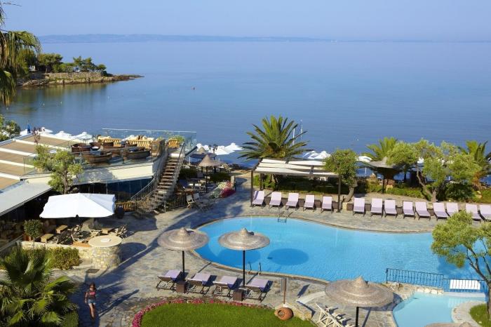 Dieses charmante und familienfreundliche Strandhotel befindet sich auf der Halbinsel Sithonia in der beliebten griechischen Ferienregion Chalkidiki. Mit hoteleigenem Privatstrand, einem riesigen Luxus-Spa-Bereich und schöner Dachterrasse mit Blick auf die türkisfarbene Ägäis erfüllt das Resort jeden Urlaubswunsch. Dank eigenem Mietwagenverleih haben Gäste zudem die Möglichkeit, während des Aufenthalts die reizvolle Umgebung zu erkunden. Bei einem Trip nach Thessaloniki, der zweitgrößten Stadt des Landes, können Besucher auf den Spuren der antiken Griechen, Römer und Byzantiner wandern oder auf ausgiebige Shoppingtour gehen. Wer es dagegen ruhiger mag, fährt einen der zahlreichen leeren Badestrände abseits des Hotels an.