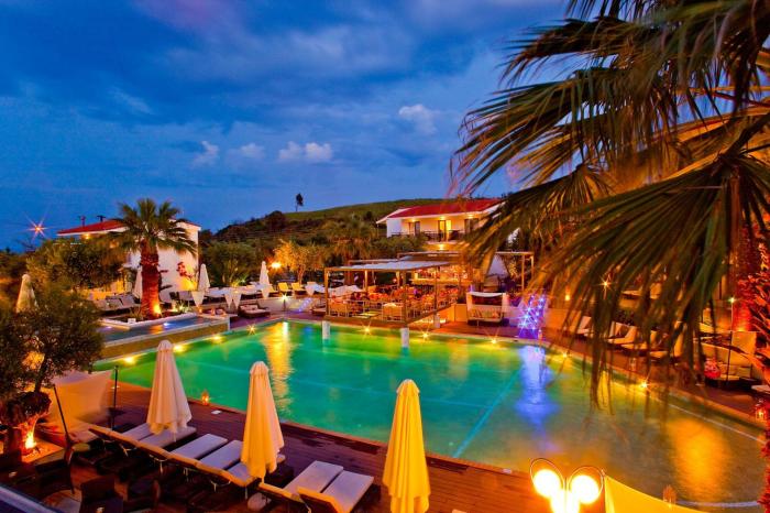 Inmitten der blühenden Landschaft Griechenlands finden Reisende im luxuriösen Hotel eine ruhige Oase in erstklassiger Lage am Ägäischen Meer. Während der feinsandige Strand und die beruhigende Brandung zum Verweilen einladen, entspannen Urlauber auch am türkisfarbenen Pool auf bequemen Tagesbetten oder im gemütlichen Sitzbereich der gläsernen Terrasse. Von den möblierten Balkonen der stilvoll eingerichteten Suiten genießen Gäste eine atemberaubende Aussicht ins malerische Umland, welches jederzeit zu Fuß oder mit dem Rad erkundet werden kann. Täglich wird der anspruchsvolle Gaumen der Reisenden mit mediterranen Köstlichkeiten verwöhnt, bevor sich ein aufregender Tag bei einem fruchtigen Cocktail dem Ende neigt.