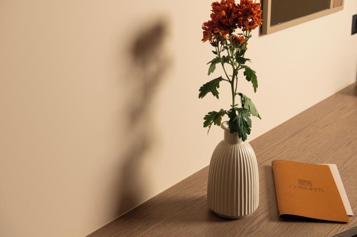 Der Fernseher ist neu und modern, es gibt eine Musikbox mit der man sich verbinden kann und einen Balkon.