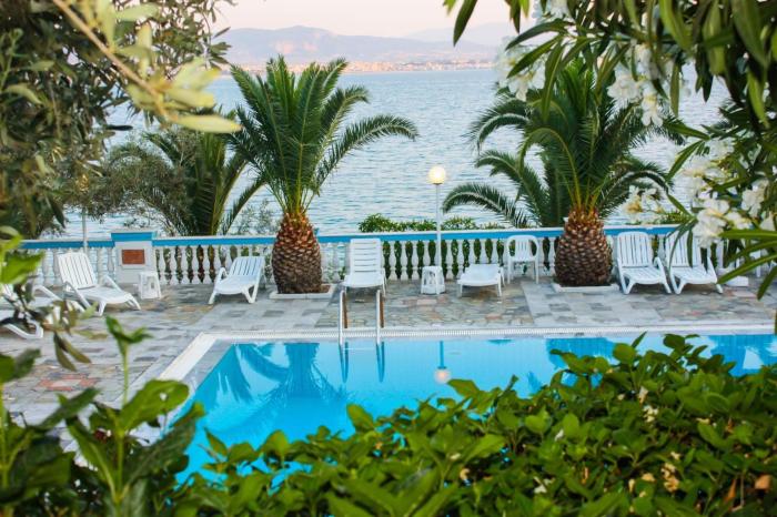 Traumhafte Lage, gute griechische Küche, sehr freundliches Personal, Parkmöglichkeiten vorhanden, im Rahmen der Kategorie (3 Sterne) sehr empfehlenswert, Strandtücher sind selbst mitzubringen (kein Verleih)