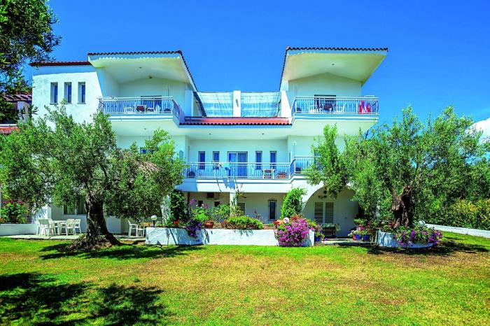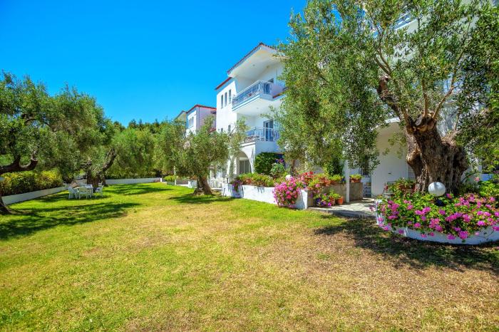 Kleine, zwar schon etwas ältere, doch gepflegte Apartmentanlage. Schöner Garten in dem man die Möglichkeit hat unter alten Olivenbäumen im Schatten zu sitzen. Anlage nur 2min. zu Fuss vom Strand entfernt. All inclusiv buchbar. Mahlzeiten können im ca. 300m entfernten Nachbarhotel eingenommen werden.