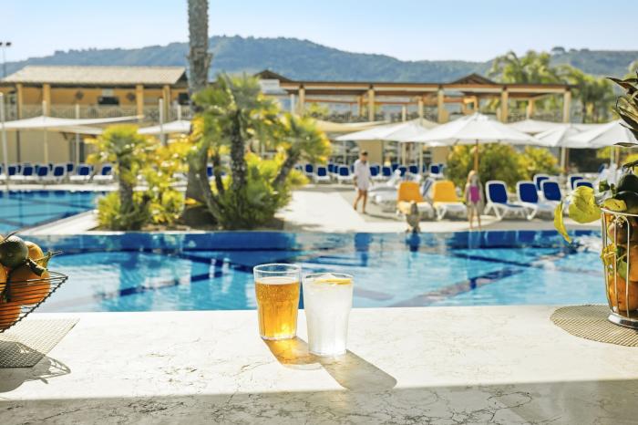 Hallo Nicole, die Bilder stimmen. Jedoch gibt es einen großen Unterschied zwischen Loge (nur Erwachsene oder ab 16.) und dem restlichen Club. Dies betrifft die Liegen am Pool, das Essen (Frühstück und Abendessen) und die Getränke. Die Getränke in der Loge sind auch Markengetränk im anderen Bereich Eigenmarken... Z.b. eine Aperol spritz kostet im normalen Bereich in der Loge nicht. Am Stand sind alle gleich beim Essen und der Getränke. Der Weg zum Stand ist ein Traum durch den Wald. Weiter stimmen die Bilder, die online sind . Grüße Stephan