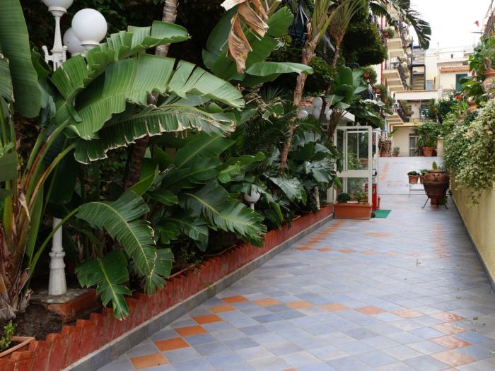 Schönes Hotel mit gepflegtem vielen Palmen