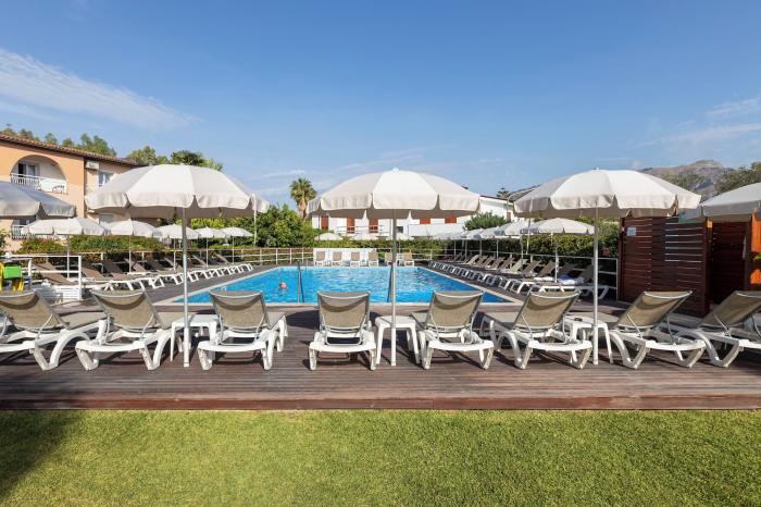 Negative Gästebewertung Aussicht aus Zimmer war quasi nicht vorhanden, hatten Erdgeschoß mit Blick auf grün bewachsene Wand, dafür fast uneinsehbar und schön schattig... Für uns war es trotzdem ok. Sandstrand völlig überlaufen, daher nicht genutzt. Lieber Piratabeach wenige Minuten weiter weg, mit Kies, dafür viel ruhiger