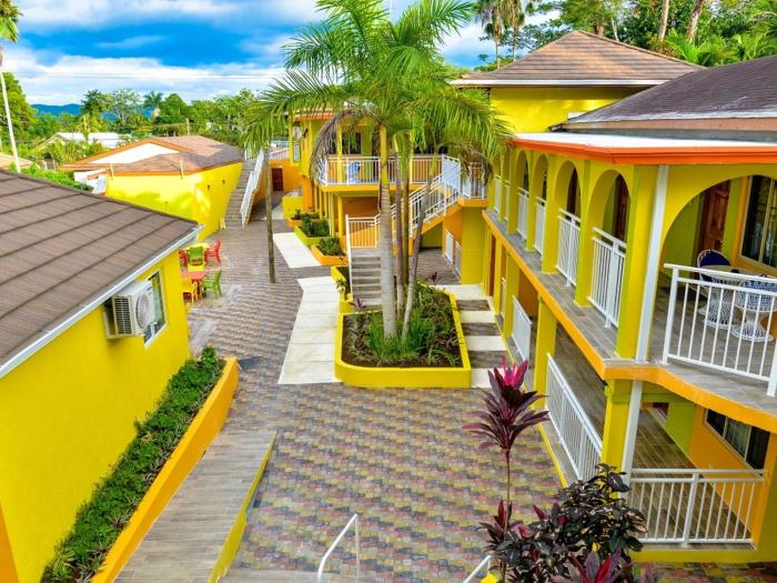 An der Westküste Jamaikas, mitten in der Karibik gelegen, lädt das familienfreundliche Strandhotel zu einem erholsamen Urlaub am türkisfarbenen Meer ein. Hier finden Gäste am Privatstrand mit weißem Sand und schattenspendenden Kokospalmen einen idealen Ort zur Entspannung. Ein exotischer Innenhof mit Swimmingpool unterstreicht durch dutzende tropische Pflanzen und Bäume das ruhige sowie familiäre Ambiente und lässt jamaikanisches Flair aufleben. Auch die architektonische Ausstattung des Hotels wartet im traditionellen Stil auf Besucher und bietet ihnen charmant eingerichtete Zimmer mit Balkon oder Terrasse. Das hoteleigene Restaurant weist zudem ein abwechslungsreiches All-Inclusive-Paket auf, welches Urlaubern eine landestypische Küche bietet.