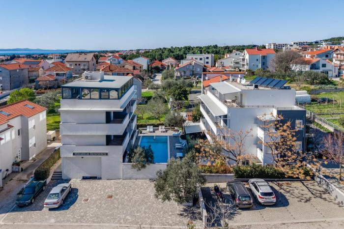 Zusammenfassende Gästebewertung Das Hotel liegt etwas außerhalb der Stadt aber ist schön. Der Schwimmbad ist beheizt und sauber. Frühstück ist auf der 3. Obergeschoss sodass man ein Blick aufs Meer und Zadar schaffen kann.