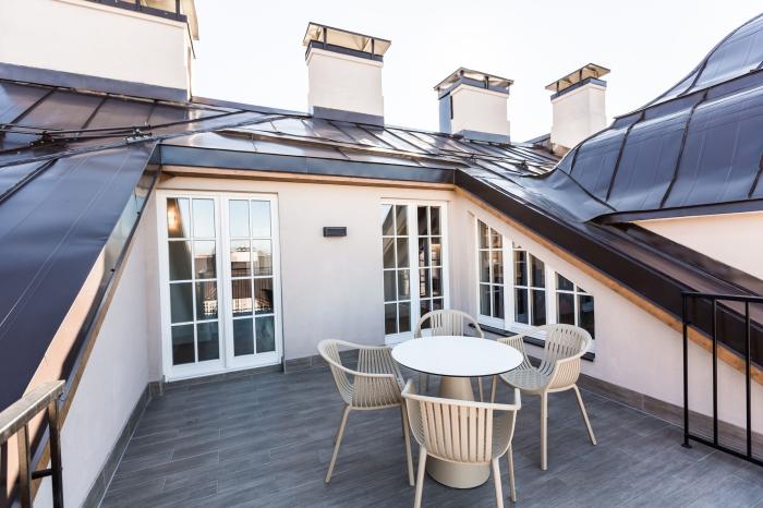 Das Hotel befindet sich im Jugendstilviertel, umgeben von schönen Gebäuden, Restaurants, Geschäften, einem Park und öffentlichen Verkehrsmitteln. Das Personal war sehr nett, hilfsbereit und immer zur Stelle!