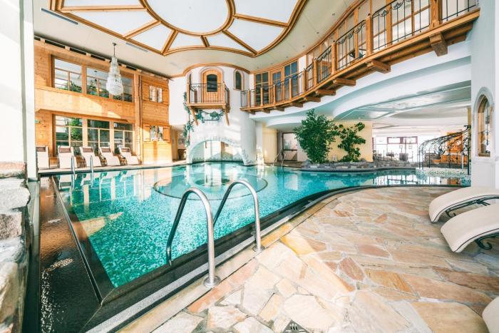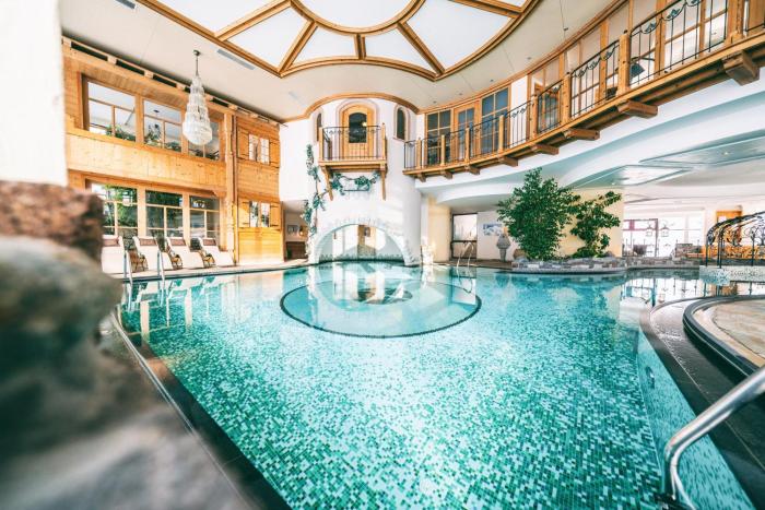 Pool (beheizt)WellnessWintersportPremium / LuxuriösFamilienfreundlichInnenpoolSauna- / BadelandschaftSportangebotPoolAyurvedaWandernParkplatz (kostenlos)MassageRad / MountainbikeRestaurantKosmetische BehandlungFitnessWäscheserviceEntspannungsangebotReitenNichtraucherhotelTennisNichtraucherzimmerAction / FunArztserviceBarrierefrei (teilweise)Internet