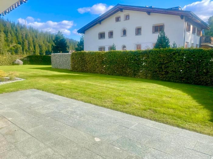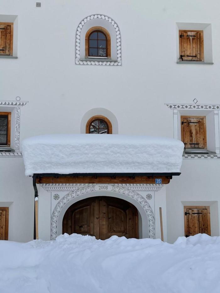 Laax Cozy Apartment Ski Bus in front of the Door