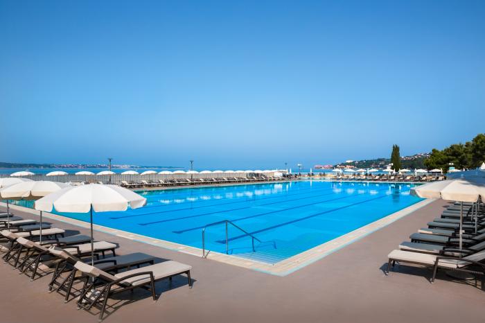 Dieses familienfreundliche Hotel vereint Entspannungs- und Erlebnisurlaub in ruhiger Lage nahe der Strandpromenade und des quirligen Zentrums von Portorož. Unmittelbar an der adriatischen Küste Slowenies gelegen, bietet die Unterkunft den idealen Ausgangspunkt für einen Ausflug in den rund 5 Kilometer entfernten und äußerst beliebten Ferienort Piran. Neben der mediterranen Parkanlage ist das besondere Highlight des Hotels die große Poollandschaft: Es gibt mehrere Außenbecken, die mit regelmäßigen Poolanimationen großen Wasserspaß bereiten. Auch für das Wohl der kleinen Gäste ist mit einem separaten Kinderbecken sowie einem vielfältigen Unterhaltungsprogramm im Miniclub gesorgt. Pure Entspannung finden Urlauber im Wellnesszentrum mit großzügigem Hallenbad, Saunalandschaft und Whirlpool. Wer sich lieber körperlich betätigen möchte, der findet bei der täglichen Fitnessanimation und dem breiten Sportangebot von Basket- bis Volleyball einen aktiven Ausgleich.
