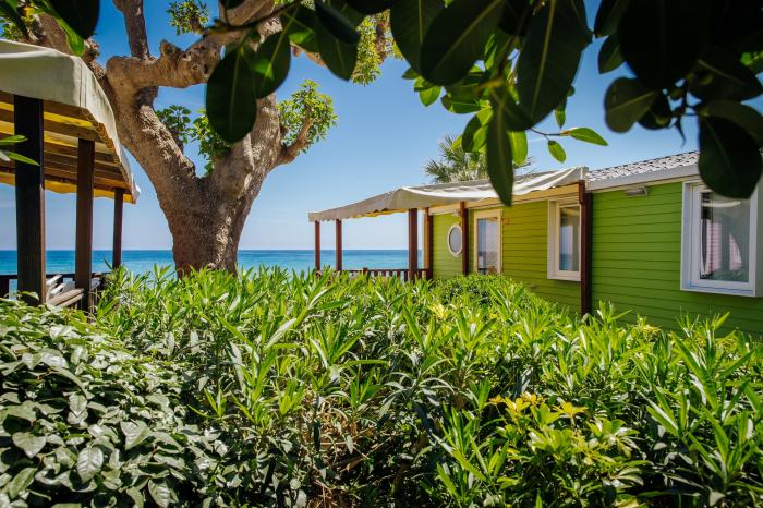 Positive Gästebewertung Nach Wechsel des Bungalows in die 2. Reihe aufgrund Unreinheiten des eigentlich zugewiesenen Bungalows hatten wir von der Terasse einen schönen Blick aufs Meer (140€ Aufpreis)
