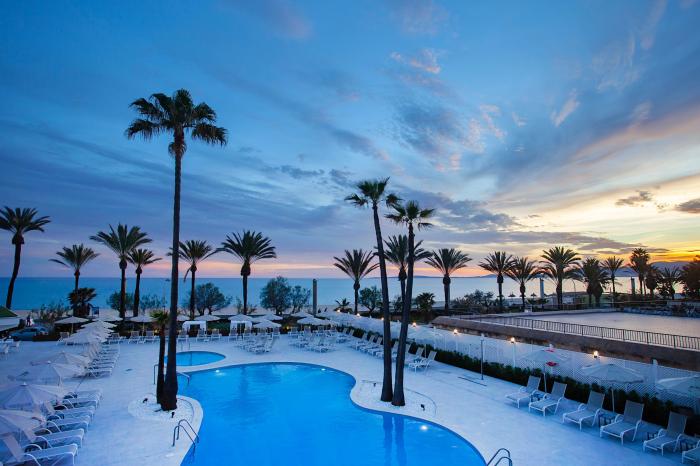Das Hotel im Süden der malerischen Mittelmeerinsel Mallorca überzeugt schon allein durch seine erstklassige Lage. Direkt am goldenen Sandstrand gelegen, kann ein Hotel für einen Badeurlaub kaum bessere Voraussetzungen bieten. Lange Tage am Meer sind bei dem weitläufigen, idyllischen Strand vorprogrammiert. Aber auch Stadtmenschen kommen hier auf ihre Kosten. Bis nach Palma de Mallorca sind es nur wenige Kilometer. Ein Bus bringt Urlauber preisgünstig und mehrmals täglich in die quirlige Inselhauptstadt. Sollte das Wetter doch einmal schlechter sein, so ziehen sich Gäste in den entspannenden Wellnessbereich des Hotels zurück und lassen sich in der wohltuenden Sauna und mit Massagen verwöhnen.