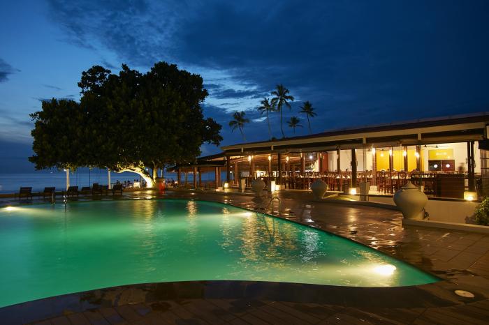 Die Unterkunft liegt an der südwestlichen Küste von Sri Lanka und punktet mit einer direkten Strandlage. Hier können Urlauber auf dem Liegestuhl unter Palmen und mit Blick auf den Indischen Ozean die Seele baumeln lassen. Das Hotel verfügt über einen großen Pool, eine Bar mit Meerblick und einen Spa-Bereich, in dem sich Reisende verwöhnen lassen können. Kulinarisch bietet das Hotel seinen Gästen eine exquisite Auswahl an Speisen im hauseigenen Restaurant. Geschäfte und Restaurants sind jedoch auch fußläufig zu erreichen und das Zentrum der Ortschaft Hikkaduwa nicht weit entfernt.