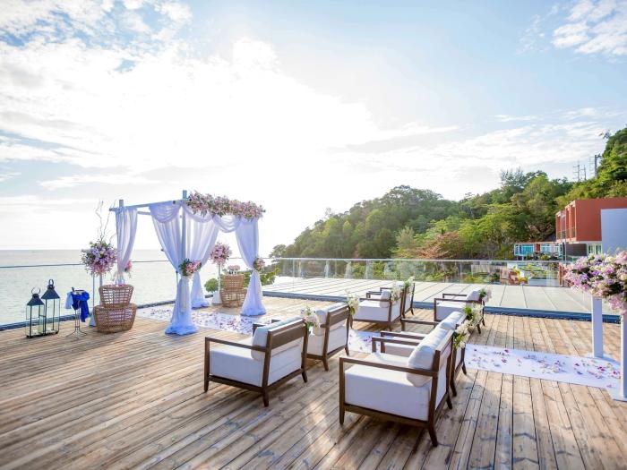 Die grünen Bäume wiegen sich leicht im Wind und das Meer spült in sanften Wellen an den idyllisch-ruhigen Strand der thailändischen Insel Phuket. Währenddessen genießen die Gäste auf der Dachterrasse dieses modernen Hotels die ersten Sonnenstrahlen des Tages und stärken sich beim Frühstück. Wer dem Körper Erholung gönnen und die Seele baumeln lassen möchte, der kann danach den Tag am Strand und Meer verbringen, aber auch der Pool lädt zum Baden ein. Erfrischend-fruchtige Getränke erhalten Urlauber an der Swim-Up-Bar. Ein breit gefächertes Angebot an Massagen und anderen Wellnessbehandlungen steht im Spa-Bereich des luxuriösen Hotels zur Verfügung.