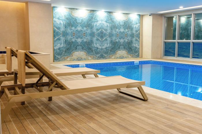 Weiter zur GalerieInnenpoolWellnessFitnessPremium / LuxuriösFamilienfreundlichPoolSauna- / BadelandschaftParkplatzEntspannungsangebotRestaurantWäscheserviceNichtraucherhotelNichtraucherzimmerArztserviceBarrierefrei (teilweise)Internet