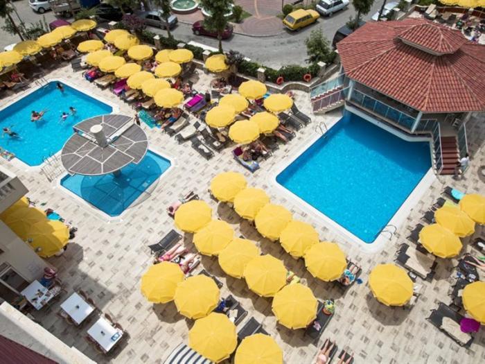 Das Hotel liegt nicht am Strand. Bis zum Strand sind es ca. 1,5 km. Es fährt 2- 3 mal ein Shuttle Bus vom Hotel dorthin. Liegen und Schirme 1- 2 Euro. Getränke und Essen gegen Bezahlung.