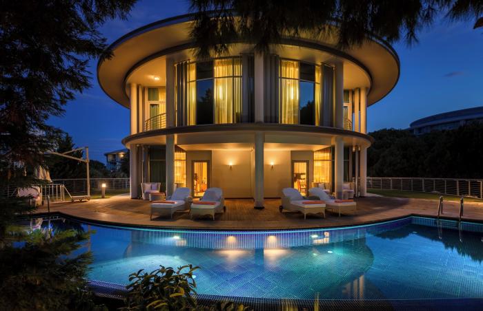 Im Resort in Belek an der Türkischen Riviera wohnen die Urlauber in exklusiver Lage zwischen 3 hoteleigenen Golfplätzen und dem privaten Sandstrand des Resorts, von dem die Gäste nur durch den Fluss Acisu und eine darüber führende Holzbrücke getrennt sind. Die imposante Hotelanlage mit Haupthaus und mehreren Villen beeindruckt durch ihre moderne wie stilvolle Architektur und den weitläufigen Garten. Hier finden Ruhesuchende eine grüne Oase der Erholung inmitten mediterraner Gewächse und einen erfrischenden Außenpool, der nahezu die gesamte Anlage umschließt. Das luxuriöse Spa bietet Entspannung auf höchstem Niveau und die anliegenden Golfplätze gehören zu den malerischsten der ganzen Türkei.