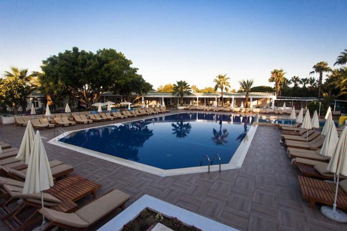 Das weitläufige Hotel liegt in Konakli direkt am breiten Sand- und Kiesstrand nur 15 Kilometer vom Stadtzentrum Alanyas mit verschiedenen Einkaufs- und Unterhaltungsmöglichkeiten entfernt. Das Hotel verfügt über 9 Hauptgebäude, welche im gepflegten mediterranen Garten liegen. Hier finden Gäste während ihres Türkei-Urlaubs Abkühlung im Außenpool mit separatem Kinderpool umgeben von einer Sonnenterrasse mit Liegestühlen und Sonnenschirmen. Spaß garantiert außerdem der kleine Aquapark mit verschiedenen Wasserrutschen.