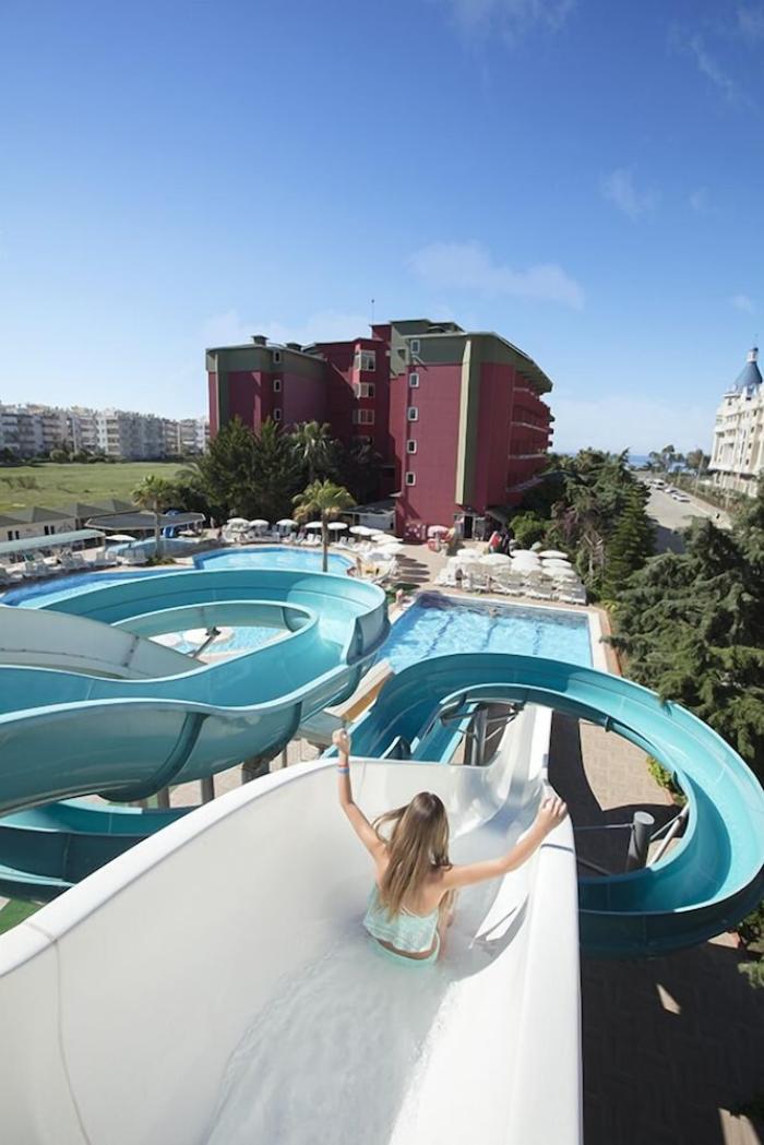Ein erquickliches Bad im Swimmingpool: Die Kleinen planschen im Kinderbecken und erwachsene Gäste gönnen sich einen Drink an der Poolbar. Im Hotel lässt sich ein rundum gelungener Türkei-Urlaub verbringen – für viele Geschmäcker. Denn in 5 Restaurants, davon 2 a-la-carte, gibt’s türkische und internationale Küche sowie schmackhafte Fischgerichte. Danach können Aktive ihren Körper bei Tennis, Darts oder Beachvolleyball wieder in Bewegung bringen. Den Abend lassen verschiedene Shows gemütlich ausklingen, ebenso lockt die Disco Bar mit Cocktails und einem Dancefloor Nachtschwärmer zu sich.
