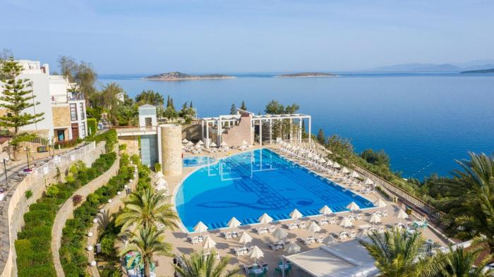 Das Resort ist ein vielseitiges und gehobenes Ferienresort im türkischen Urlaubsort Bodrum auf der gleichnamigen Halbinsel. Das Hotel liegt direkt am Meer und verfügt über eine eigene Badestelle, sodass Abkühlung an heißen Tagen möglich ist. Auch der große Hauptpool sowie der Aquapark sorgen für angenehme Abwechslung. Besonders wohl fühlen sich auch die jungen Gäste: Ob im Miniclub oder beim Rutschen, beim Kinderschminken oder in der Minidisco – das üppige Angebot an Kinderanimation ist eines der Aushängeschilder des Hotels. Auch Erwachsene kommen auf ihre Kosten: Live-Musik, Tanzabende und Theater runden das stimmige Unterhaltungsprogramm gekonnt ab.