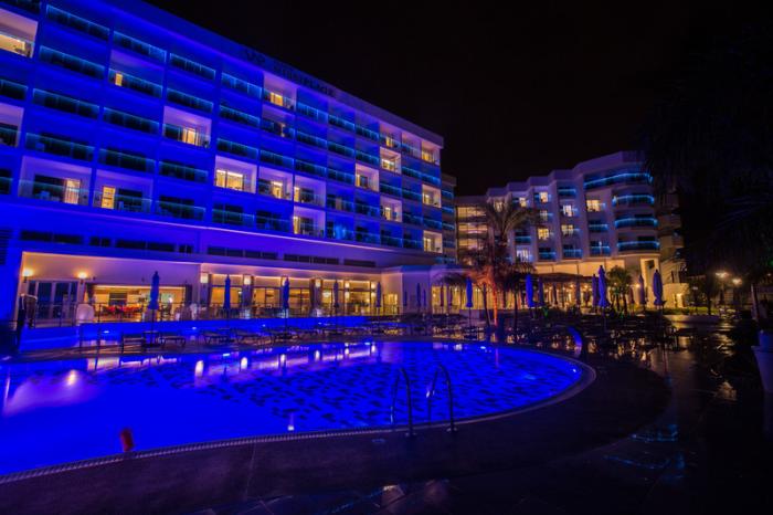 Mit bis zu 340 Sonnentagen pro Jahr kommen Sonnenanbeter auf Zypern definitiv auf ihre Kosten – so auch in diesem populären Hotel. Die moderne Hotelanlage liegt direkt am feinen, hellen Sandstrand Nissi Beach und bietet ihren Gästen die besten Voraussetzungen für einen traumhaften Strandurlaub. So ist in den meisten der ästhetischen Zimmer ein Balkon mit Meerblick Standard und auch der gepflegte Poolbereich samt Sonnenterasse, Liegen und Sonnenschirmen lädt zum Verweilen ein. Darüber hinaus gibt es ein Kinderbecken und auch bei Regenwetter lässt es sich im Indoor-Pool hervorragend entspannen.